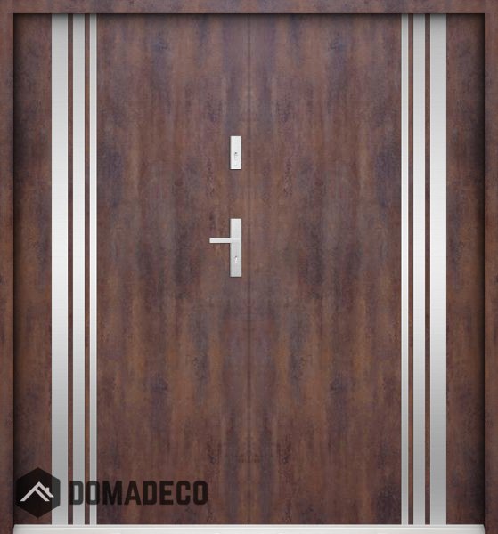 La puerta está hecha de acero inoxidable. En su interior está rellena de espuma de poliuretano PUR y madera. El grosor de la hoja de la puerta es de 55 mm. Posee un Sistema de Sellado Doble: Un sello se encuentra en la parte superior del marco y el otro en la parte de soporte de la hoja de la puerta. Reducen la vibración y protegen su casa de la pérdida de calor. No cambian su volumen bajo la influencia de las condiciones atmosféricas. El marco de la puerta tiene refuerzos antirrobo en partes de bisagras y puntos de cierre.
