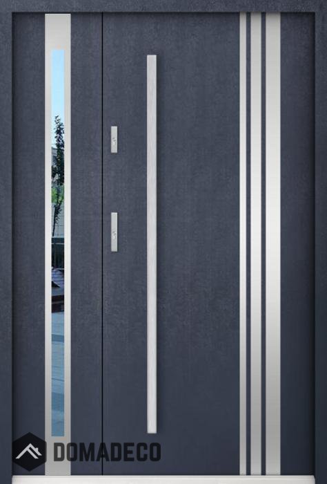 La puerta está hecha de acero inoxidable. En su interior está rellena de espuma de poliuretano PUR y madera. El grosor de la hoja de la puerta es de 55 mm. Posee un Sistema de Sellado Doble: Un sello se encuentra en la parte superior del marco y el otro en la parte de soporte de la hoja de la puerta. Reducen la vibración y protegen su casa de la pérdida de calor. No cambian su volumen bajo la influencia de las condiciones atmosféricas. El marco de la puerta tiene refuerzos antirrobo en partes de bisagras y puntos de cierre.
