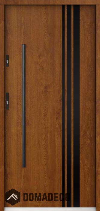 La puerta está hecha de acero inoxidable. En su interior está rellena de espuma de poliuretano PUR y madera. El grosor de la hoja de la puerta es de 55 mm. Posee un Sistema de Sellado Doble: Un sello se encuentra en la parte superior del marco y el otro en la parte de soporte de la hoja de la puerta. Reducen la vibración y protegen su casa de la pérdida de calor. No cambian su volumen bajo la influencia de las condiciones atmosféricas. El marco de la puerta tiene refuerzos antirrobo en partes de bisagras y puntos de cierre.