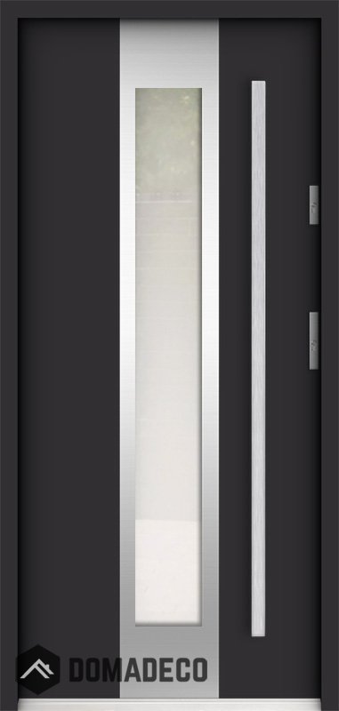 La puerta está hecha de acero inoxidable. En su interior está rellena de espuma de poliuretano PUR y madera. El grosor de la hoja de la puerta es de 55 mm. Posee un Sistema de Sellado Doble: Un sello se encuentra en la parte superior del marco y el otro en la parte de soporte de la hoja de la puerta. Reducen la vibración y protegen su casa de la pérdida de calor. No cambian su volumen bajo la influencia de las condiciones atmosféricas. El marco de la puerta tiene refuerzos antirrobo en partes de bisagras y puntos de cierre.
