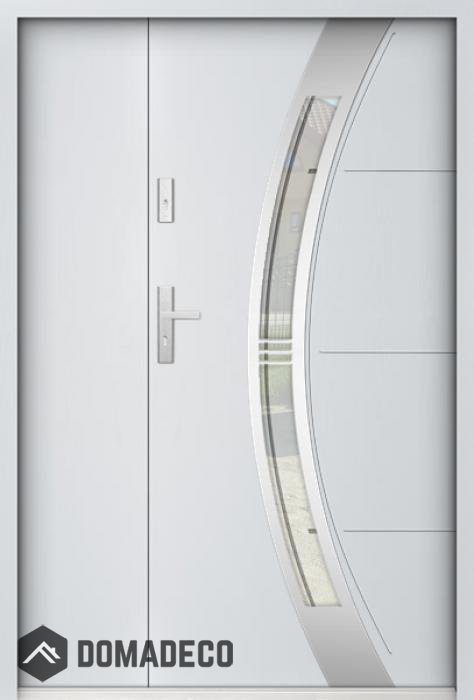 La puerta está hecha de acero inoxidable. En su interior está rellena de espuma de poliuretano PUR y madera. El grosor de la hoja de la puerta es de 55 mm. Posee un Sistema de Sellado Doble: Un sello se encuentra en la parte superior del marco y el otro en la parte de soporte de la hoja de la puerta. Reducen la vibración y protegen su casa de la pérdida de calor. No cambian su volumen bajo la influencia de las condiciones atmosféricas. El marco de la puerta tiene refuerzos antirrobo en partes de bisagras y puntos de cierre.