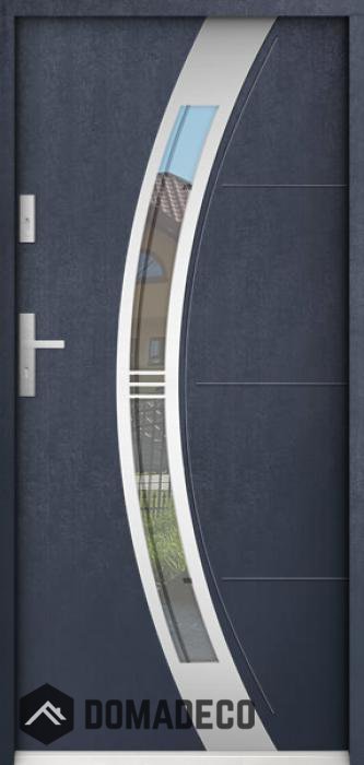 La puerta está hecha de acero inoxidable. En su interior está rellena de espuma de poliuretano PUR y madera. El grosor de la hoja de la puerta es de 55 mm. Posee un Sistema de Sellado Doble: Un sello se encuentra en la parte superior del marco y el otro en la parte de soporte de la hoja de la puerta. Reducen la vibración y protegen su casa de la pérdida de calor. No cambian su volumen bajo la influencia de las condiciones atmosféricas. El marco de la puerta tiene refuerzos antirrobo en partes de bisagras y puntos de cierre.