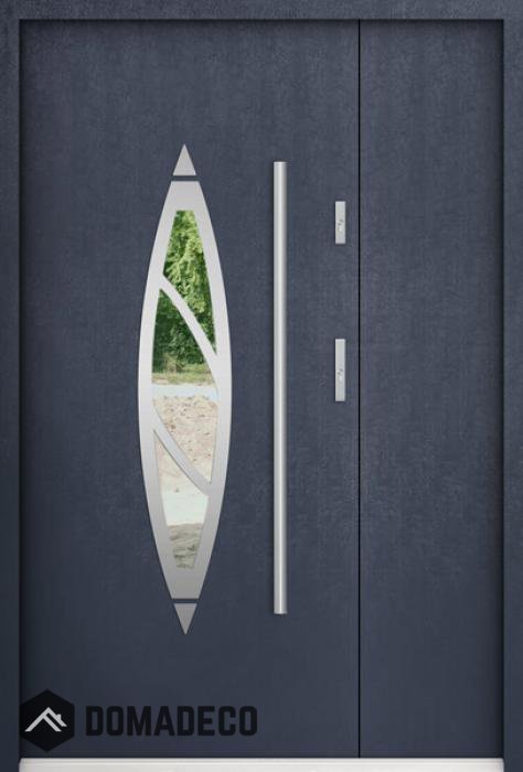 La puerta está hecha de acero inoxidable. En su interior está rellena de espuma de poliuretano PUR y madera. El grosor de la hoja de la puerta es de 55 mm. Posee un Sistema de Sellado Doble: Un sello se encuentra en la parte superior del marco y el otro en la parte de soporte de la hoja de la puerta. Reducen la vibración y protegen su casa de la pérdida de calor. No cambian su volumen bajo la influencia de las condiciones atmosféricas. El marco de la puerta tiene refuerzos antirrobo en partes de bisagras y puntos de cierre.