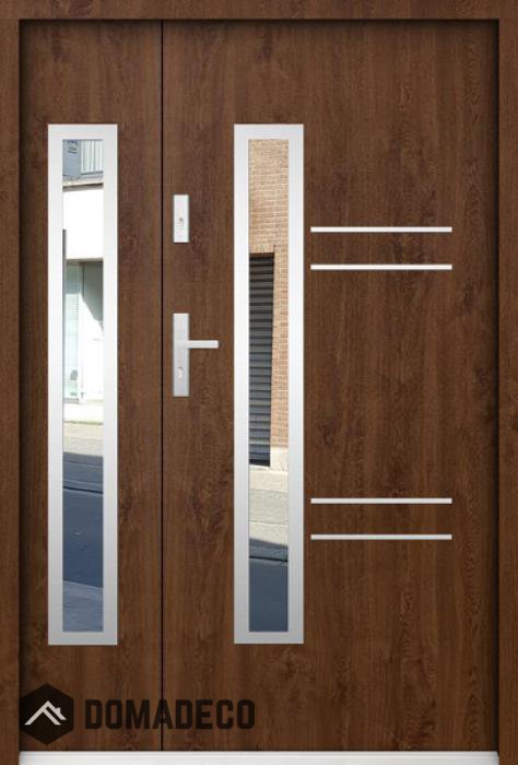 La puerta está hecha de acero inoxidable. En su interior está rellena de espuma de poliuretano PUR y madera. El grosor de la hoja de la puerta es de 55 mm. Posee un Sistema de Sellado Doble: Un sello se encuentra en la parte superior del marco y el otro en la parte de soporte de la hoja de la puerta. Reducen la vibración y protegen su casa de la pérdida de calor. No cambian su volumen bajo la influencia de las condiciones atmosféricas. El marco de la puerta tiene refuerzos antirrobo en partes de bisagras y puntos de cierre.