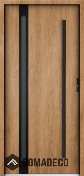 La puerta está hecha de acero inoxidable. En su interior está rellena de espuma de poliuretano PUR y madera. El grosor de la hoja de la puerta es de 55 mm. Posee un Sistema de Sellado Doble: Un sello se encuentra en la parte superior del marco y el otro en la parte de soporte de la hoja de la puerta. Reducen la vibración y protegen su casa de la pérdida de calor. No cambian su volumen bajo la influencia de las condiciones atmosféricas. El marco de la puerta tiene refuerzos antirrobo en partes de bisagras y puntos de cierre.