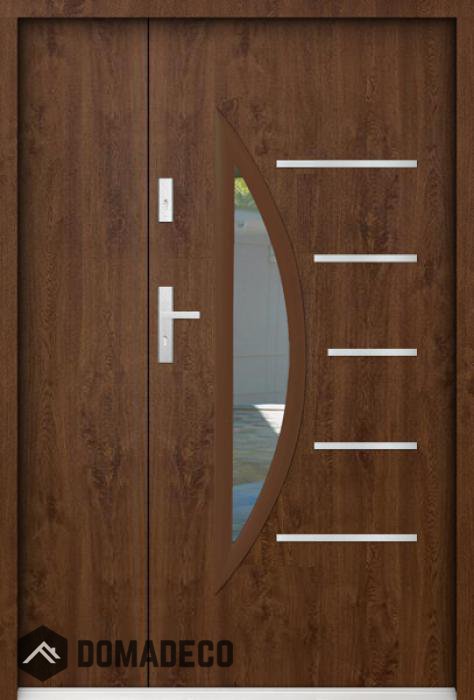 La puerta está hecha de acero inoxidable. En su interior está rellena de espuma de poliuretano PUR y madera. El grosor de la hoja de la puerta es de 55 mm. Posee un Sistema de Sellado Doble: Un sello se encuentra en la parte superior del marco y el otro en la parte de soporte de la hoja de la puerta. Reducen la vibración y protegen su casa de la pérdida de calor. No cambian su volumen bajo la influencia de las condiciones atmosféricas. El marco de la puerta tiene refuerzos antirrobo en partes de bisagras y puntos de cierre.
