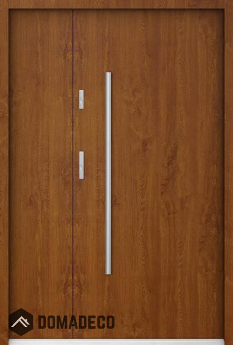 La puerta está hecha de acero inoxidable. En su interior está rellena de espuma de poliuretano PUR y madera. El grosor de la hoja de la puerta es de 55 mm. Posee un Sistema de Sellado Doble: Un sello se encuentra en la parte superior del marco y el otro en la parte de soporte de la hoja de la puerta. Reducen la vibración y protegen su casa de la pérdida de calor. No cambian su volumen bajo la influencia de las condiciones atmosféricas. El marco de la puerta tiene refuerzos antirrobo en partes de bisagras y puntos de cierre.