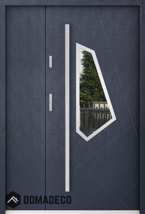 La puerta está hecha de acero inoxidable. En su interior está rellena de espuma de poliuretano PUR y madera. El grosor de la hoja de la puerta es de 55 mm. Posee un Sistema de Sellado Doble: Un sello se encuentra en la parte superior del marco y el otro en la parte de soporte de la hoja de la puerta. Reducen la vibración y protegen su casa de la pérdida de calor. No cambian su volumen bajo la influencia de las condiciones atmosféricas. El marco de la puerta tiene refuerzos antirrobo en partes de bisagras y puntos de cierre.