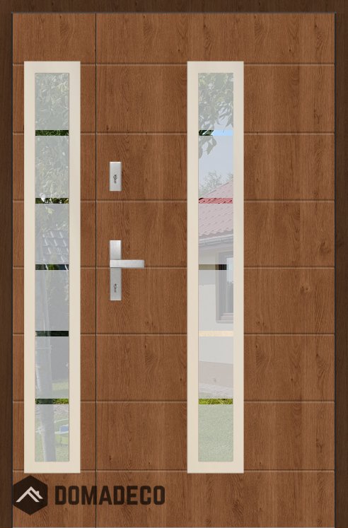 La puerta es de acero inoxidable. En el interior está rellena de espuma de poliuretano PUR y madera. El grosor de la hoja de la puerta es de 54 mm. Sistema de sellado dual: Un sello está en la parte inferior del marco y el otro está ubicado en la parte de soporte de la hoja de la puerta. Reducen la vibración y protegen su casa de la pérdida de calor. No cambian su volumen bajo la influencia de las condiciones atmosféricas. El marco de la puerta tiene refuerzos antirrobo en piezas de bisagra y puntos de bloqueo.