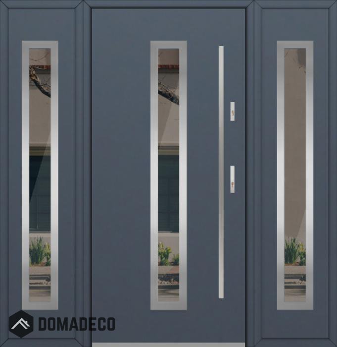 La puerta es de acero inoxidable. En el interior está rellena de espuma de poliuretano PUR y madera. El grosor de la hoja de la puerta es de 54 mm. Sistema de sellado dual: Un sello está en la parte inferior del marco y el otro está ubicado en la parte de soporte de la hoja de la puerta. Reducen la vibración y protegen su casa de la pérdida de calor. No cambian su volumen bajo la influencia de las condiciones atmosféricas. El marco de la puerta tiene refuerzos antirrobo en piezas de bisagra y puntos de bloqueo.