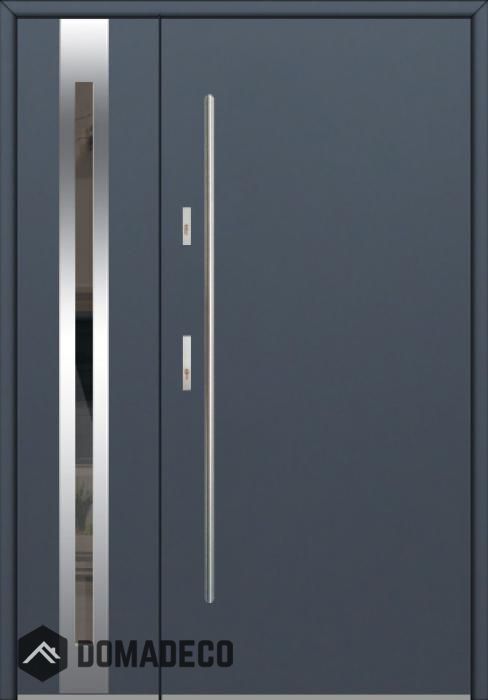La puerta es de acero inoxidable. En el interior está rellena de espuma de poliuretano PUR y madera. El grosor de la hoja de la puerta es de 54 mm. Sistema de sellado dual: Un sello está en la parte inferior del marco y el otro está ubicado en la parte de soporte de la hoja de la puerta. Reducen la vibración y protegen su casa de la pérdida de calor. No cambian su volumen bajo la influencia de las condiciones atmosféricas. El marco de la puerta tiene refuerzos antirrobo en piezas de bisagra y puntos de bloqueo.