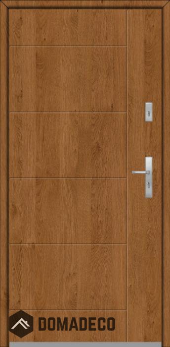 La puerta es de acero inoxidable. En el interior está rellena de espuma de poliuretano PUR y madera. El grosor de la hoja de la puerta es de 64 mm. Sistema de sellado dual: Un sello está en la parte inferior del marco y el otro está ubicado en la parte de soporte de la hoja de la puerta. Reducen la vibración y protegen su casa de la pérdida de calor. No cambian su volumen bajo la influencia de las condiciones atmosféricas. El marco de la puerta tiene refuerzos antirrobo en piezas de bisagra y puntos de bloqueo.