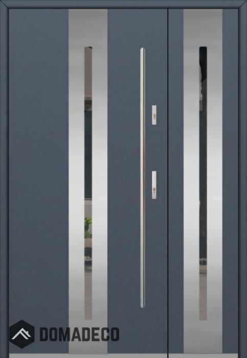 La puerta es de acero inoxidable. En el interior está rellena de espuma de poliuretano PUR y madera. El grosor de la hoja de la puerta es de 54 mm. Sistema de sellado dual: Un sello está en la parte inferior del marco y el otro está ubicado en la parte de soporte de la hoja de la puerta. Reducen la vibración y protegen su casa de la pérdida de calor. No cambian su volumen bajo la influencia de las condiciones atmosféricas. El marco de la puerta tiene refuerzos antirrobo en piezas de bisagra y puntos de bloqueo.