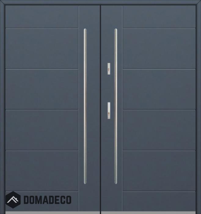 La puerta es de acero inoxidable. En el interior está rellena de espuma de poliuretano PUR y madera. El grosor de la hoja de la puerta es de 54 mm. Sistema de sellado dual: Un sello está en la parte inferior del marco y el otro está ubicado en la parte de soporte de la hoja de la puerta. Reducen la vibración y protegen su casa de la pérdida de calor. No cambian su volumen bajo la influencia de las condiciones atmosféricas. El marco de la puerta tiene refuerzos antirrobo en piezas de bisagra y puntos de bloqueo.