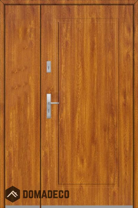 La puerta es de acero inoxidable. En el interior está rellena de espuma de poliuretano PUR y madera. El grosor de la hoja de la puerta es de 54 mm. Sistema de sellado dual: Un sello está en la parte inferior del marco y el otro está ubicado en la parte de soporte de la hoja de la puerta. Reducen la vibración y protegen su casa de la pérdida de calor. No cambian su volumen bajo la influencia de las condiciones atmosféricas. El marco de la puerta tiene refuerzos antirrobo en piezas de bisagra y puntos de bloqueo.