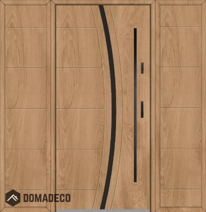 La puerta es de acero inoxidable. En el interior está rellena de espuma de poliuretano PUR y madera. El grosor de la hoja de la puerta es de 54 mm. Sistema de sellado dual: Un sello está en la parte inferior del marco y el otro está ubicado en la parte de soporte de la hoja de la puerta. Reducen la vibración y protegen su casa de la pérdida de calor. No cambian su volumen bajo la influencia de las condiciones atmosféricas. El marco de la puerta tiene refuerzos antirrobo en piezas de bisagra y puntos de bloqueo.