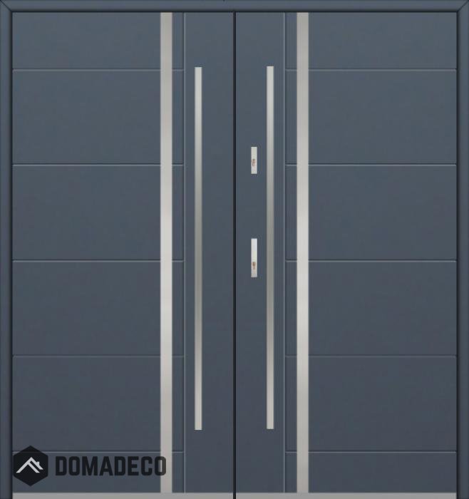 La puerta es de acero inoxidable. En el interior está rellena de espuma de poliuretano PUR y madera. El grosor de la hoja de la puerta es de 54 mm. Sistema de sellado dual: Un sello está en la parte inferior del marco y el otro está ubicado en la parte de soporte de la hoja de la puerta. Reducen la vibración y protegen su casa de la pérdida de calor. No cambian su volumen bajo la influencia de las condiciones atmosféricas. El marco de la puerta tiene refuerzos antirrobo en piezas de bisagra y puntos de bloqueo.