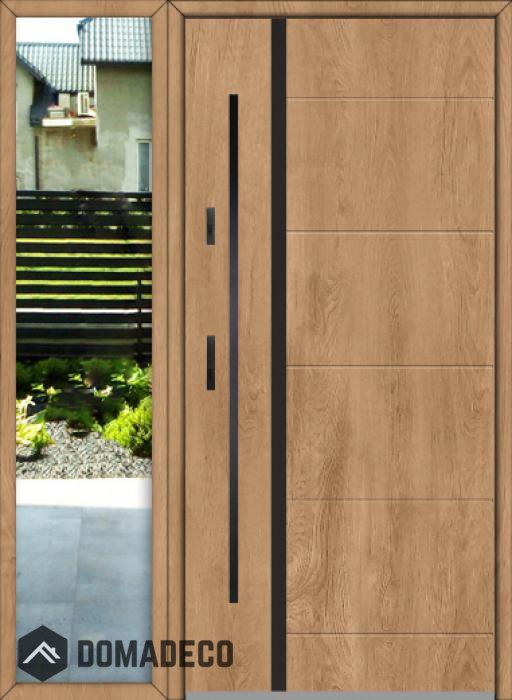 La puerta está hecha de acero inoxidable. En su interior está rellena de espuma de poliuretano PUR y madera. El grosor de la hoja de la puerta es de 64 mm. Posee un Sistema de Sellado Doble: Un sello se encuentra en la parte superior del marco y el otro en la parte de soporte de la hoja de la puerta. Reducen la vibración y protegen su casa de la pérdida de calor. No cambian su volumen bajo la influencia de las condiciones atmosféricas. El marco de la puerta tiene refuerzos antirrobo en partes de bisagras y puntos de cierre.