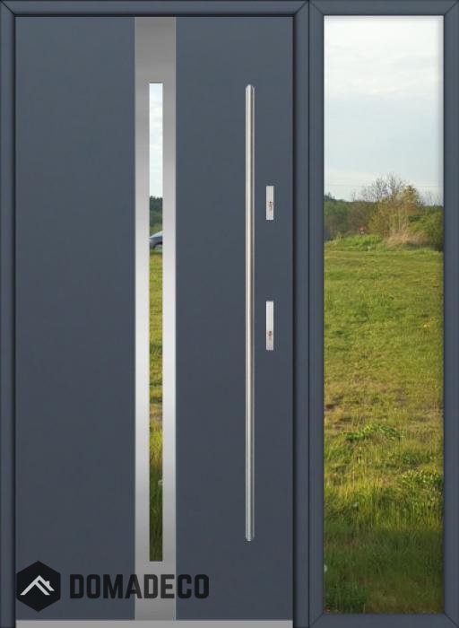 La puerta está hecha de acero inoxidable. En su interior está rellena de espuma de poliuretano PUR y madera. El grosor de la hoja de la puerta es de 64 mm. Posee un Sistema de Sellado Doble: Un sello se encuentra en la parte superior del marco y el otro en la parte de soporte de la hoja de la puerta. Reducen la vibración y protegen su casa de la pérdida de calor. No cambian su volumen bajo la influencia de las condiciones atmosféricas. El marco de la puerta tiene refuerzos antirrobo en partes de bisagras y puntos de cierre.