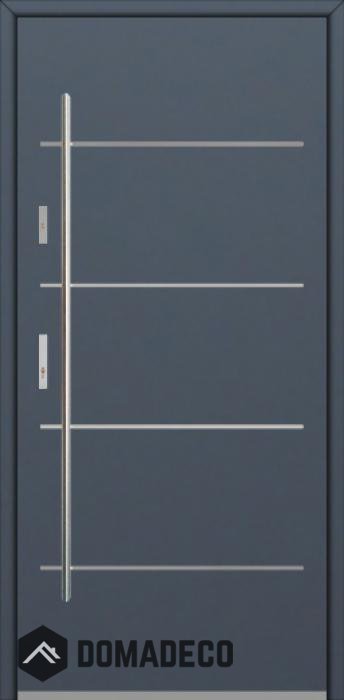 Diseño moderno basado en una nueva tecnología que consiste en el enjuague de elementos de acero inoxidable en la superficie de la puerta.