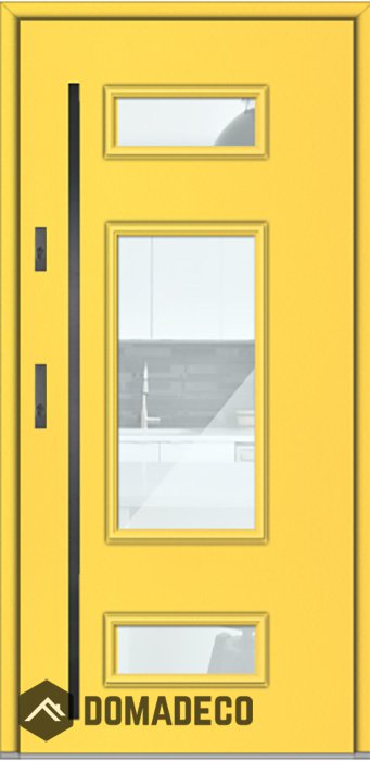 La puerta es de acero inoxidable. En el interior está rellena de espuma de poliuretano PUR y madera. El grosor de la hoja de la puerta es de 64 mm. Sistema de sellado dual: Un sello está en la parte inferior del marco y el otro está ubicado en la parte de soporte de la hoja de la puerta. Reducen la vibración y protegen su casa de la pérdida de calor. No cambian su volumen bajo la influencia de las condiciones atmosféricas. El marco de la puerta tiene refuerzos antirrobo en piezas de bisagra y puntos de bloqueo.