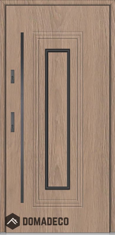 La puerta es de acero inoxidable. En el interior está rellena de espuma de poliuretano PUR y madera. El grosor de la hoja de la puerta es de 64 mm. Sistema de sellado dual: Un sello está en la parte inferior del marco y el otro está ubicado en la parte de soporte de la hoja de la puerta. Reducen la vibración y protegen su casa de la pérdida de calor. No cambian su volumen bajo la influencia de las condiciones atmosféricas. El marco de la puerta tiene refuerzos antirrobo en piezas de bisagra y puntos de bloqueo.