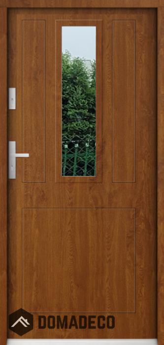 La puerta está hecha de acero inoxidable. En su interior está rellena de espuma de poliuretano PUR y madera. El grosor de la hoja de la puerta es de 55 mm. Posee un Sistema de Sellado Doble: Un sello se encuentra en la parte superior del marco y el otro en la parte de soporte de la hoja de la puerta. Reducen la vibración y protegen su casa de la pérdida de calor. No cambian su volumen bajo la influencia de las condiciones atmosféricas. El marco de la puerta tiene refuerzos antirrobo en partes de bisagras y puntos de cierre.