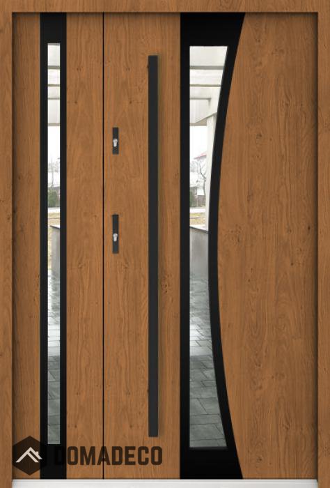 La puerta está hecha de acero inoxidable. En su interior está rellena de espuma de poliuretano PUR y madera. El grosor de la hoja de la puerta es de 55 mm. Posee un Sistema de Sellado Doble: Un sello se encuentra en la parte superior del marco y el otro en la parte de soporte de la hoja de la puerta. Reducen la vibración y protegen su casa de la pérdida de calor. No cambian su volumen bajo la influencia de las condiciones atmosféricas. El marco de la puerta tiene refuerzos antirrobo en partes de bisagras y puntos de cierre.
