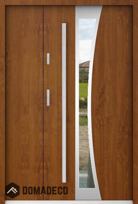 La puerta está hecha de acero inoxidable. En su interior está rellena de espuma de poliuretano PUR y madera. El grosor de la hoja de la puerta es de 55 mm. Posee un Sistema de Sellado Doble: Un sello se encuentra en la parte superior del marco y el otro en la parte de soporte de la hoja de la puerta. Reducen la vibración y protegen su casa de la pérdida de calor. No cambian su volumen bajo la influencia de las condiciones atmosféricas. El marco de la puerta tiene refuerzos antirrobo en partes de bisagras y puntos de cierre.