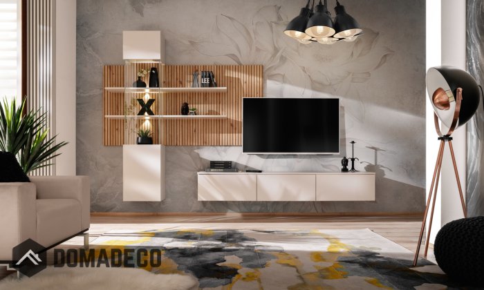 Decorative panels – grooved, with black inserts (print imitating slats), which gives the whole a modern 3D panel effect.