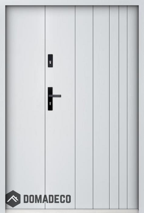 La puerta está hecha de acero inoxidable. En su interior está rellena de espuma de poliuretano PUR y madera. El grosor de la hoja de la puerta es de 55 mm. Posee un Sistema de Sellado Doble: Un sello se encuentra en la parte superior del marco y el otro en la parte de soporte de la hoja de la puerta. Reducen la vibración y protegen su casa de la pérdida de calor. No cambian su volumen bajo la influencia de las condiciones atmosféricas. El marco de la puerta tiene refuerzos antirrobo en partes de bisagras y puntos de cierre.