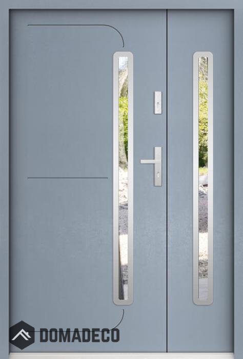 La puerta está hecha de acero inoxidable. En su interior está rellena de espuma de poliuretano PUR y madera. El grosor de la hoja de la puerta es de 55 mm. Posee un Sistema de Sellado Doble: Un sello se encuentra en la parte superior del marco y el otro en la parte de soporte de la hoja de la puerta. Reducen la vibración y protegen su casa de la pérdida de calor. No cambian su volumen bajo la influencia de las condiciones atmosféricas. El marco de la puerta tiene refuerzos antirrobo en partes de bisagras y puntos de cierre.