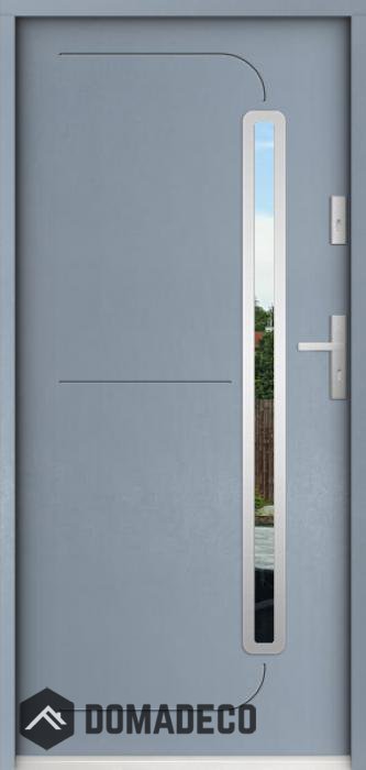 La puerta está hecha de acero inoxidable. En su interior está rellena de espuma de poliuretano PUR y madera. El grosor de la hoja de la puerta es de 55 mm. Posee un Sistema de Sellado Doble: Un sello se encuentra en la parte superior del marco y el otro en la parte de soporte de la hoja de la puerta. Reducen la vibración y protegen su casa de la pérdida de calor. No cambian su volumen bajo la influencia de las condiciones atmosféricas. El marco de la puerta tiene refuerzos antirrobo en partes de bisagras y puntos de cierre.