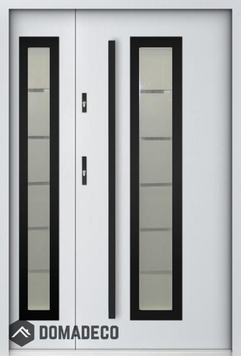 La puerta está hecha de acero inoxidable. En su interior está rellena de espuma de poliuretano PUR y madera. El grosor de la hoja de la puerta es de 55 mm. Posee un Sistema de Sellado Doble: Un sello se encuentra en la parte superior del marco y el otro en la parte de soporte de la hoja de la puerta. Reducen la vibración y protegen su casa de la pérdida de calor. No cambian su volumen bajo la influencia de las condiciones atmosféricas. El marco de la puerta tiene refuerzos antirrobo en partes de bisagras y puntos de cierre.