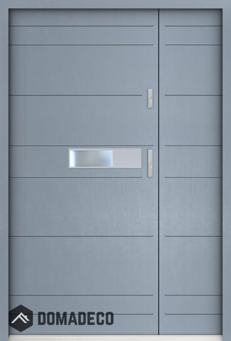 La puerta está hecha de acero inoxidable. En su interior está rellena de espuma de poliuretano PUR y madera. El grosor de la hoja de la puerta es de 55 mm. Posee un Sistema de Sellado Doble: Un sello se encuentra en la parte superior del marco y el otro en la parte de soporte de la hoja de la puerta. Reducen la vibración y protegen su casa de la pérdida de calor. No cambian su volumen bajo la influencia de las condiciones atmosféricas. El marco de la puerta tiene refuerzos antirrobo en partes de bisagras y puntos de cierre.