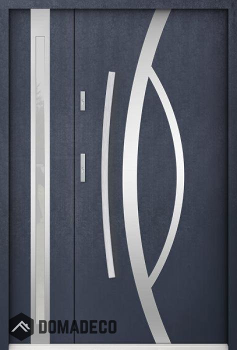 La puerta está hecha de acero inoxidable. En su interior está rellena de espuma de poliuretano PUR y madera. El grosor de la hoja de la puerta es de 55 mm. Posee un Sistema de Sellado Doble: Un sello se encuentra en la parte superior del marco y el otro en la parte de soporte de la hoja de la puerta. Reducen la vibración y protegen su casa de la pérdida de calor. No cambian su volumen bajo la influencia de las condiciones atmosféricas. El marco de la puerta tiene refuerzos antirrobo en partes de bisagras y puntos de cierre.