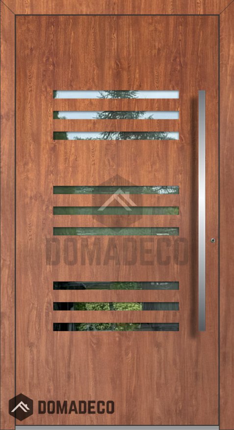 La moderna puerta de entrada de aluminio LIM C24 con ventanas horizontales es una fusión perfecta de diseño contemporáneo, artesanía superior y funcionalidad avanzada. Diseñada para realzar la entrada de cualquier vivienda o edificio comercial, esta puerta combina una estética elegante con un rendimiento robusto, lo que la convierte en la opción ideal para quienes valoran el estilo, la seguridad y la eficiencia energética.