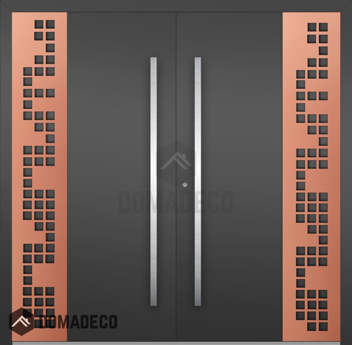 En resumen, la puerta de entrada doble de aluminio LIM C27, recubierta con lámina de cobre y con cuadrados recortados, encarna la combinación perfecta de durabilidad, seguridad y expresión artística. Es una opción excelente para quienes buscan una puerta de alta calidad y visualmente impresionante que ofrezca tanto rendimiento como un estilo atemporal.