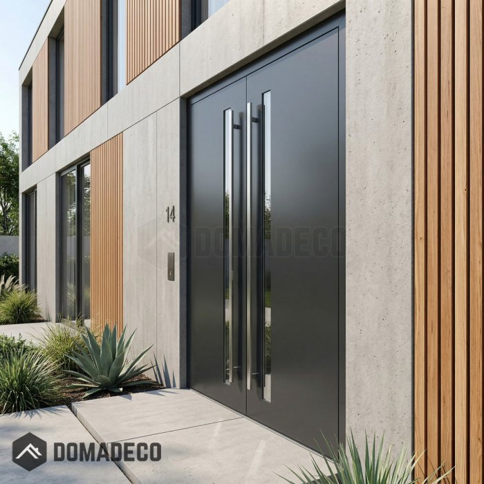 LIM Flet A puerta de entrada doble de aluminio con bisagras dobles y vidrio vertical