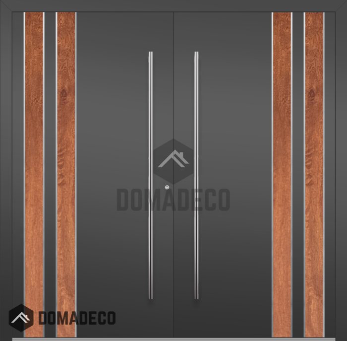 LIM v28 doble - puerta de entrada doble de aluminio con decoración de madera