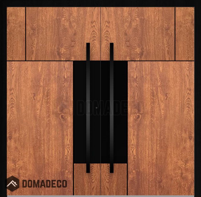 LIM v35 doble: puerta de entrada doble de aluminio con textura y decoración de madera