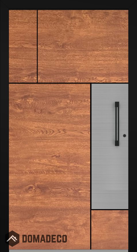LIM V35 - aluminium wooden texture front door with inox decor