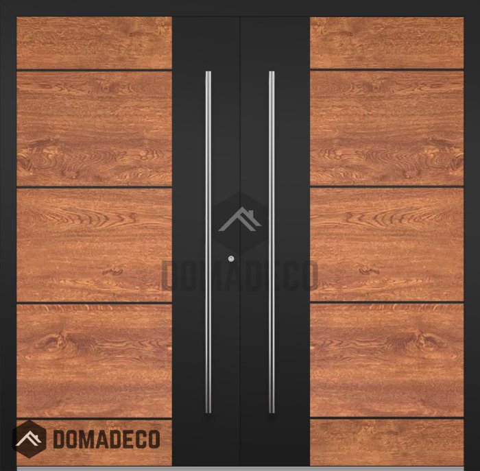 LIM v36 doble - puerta de entrada doble de aluminio con decoración de madera