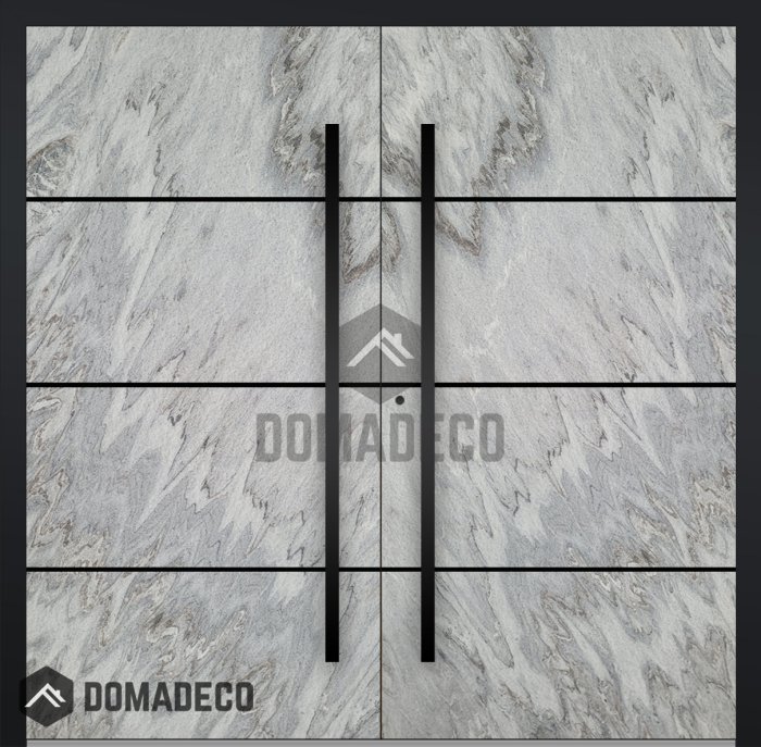 LIM V42 doble - puerta de entrada doble de aluminio revestida con textura de piedra rocosa blanca