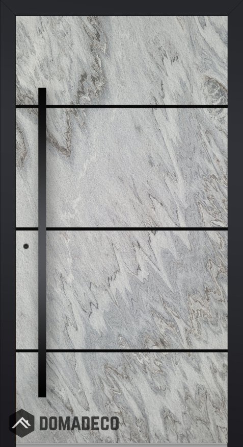 LIM V42 - puerta principal de aluminio revestida con textura de piedra rocosa blanca