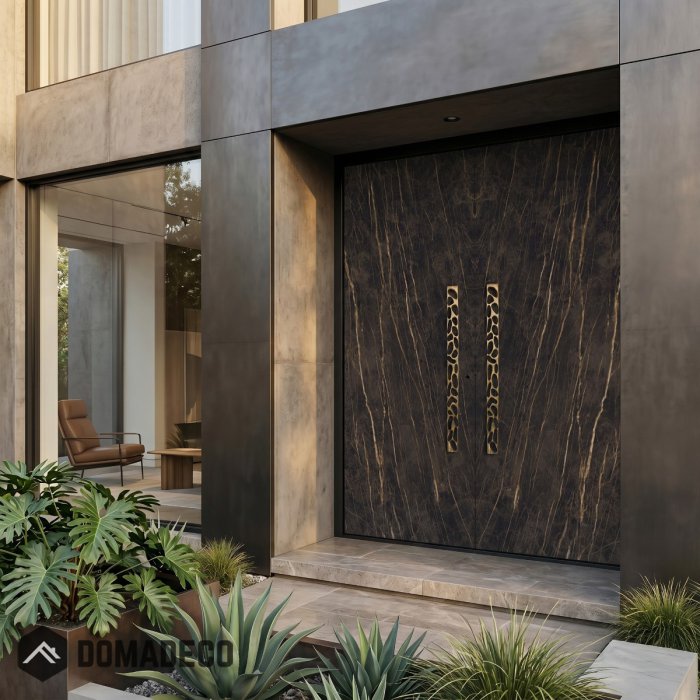 LIM V54 doble - doble puerta batiente de aluminio revestida de cuarzo sinterizado Noir Desir