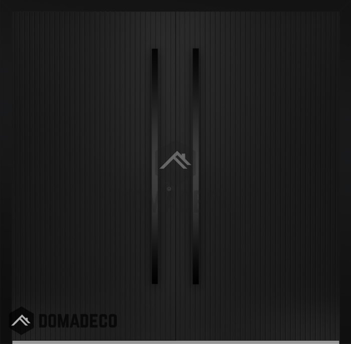 LIM v62 doble: puerta doble de aluminio con rayas verticales.