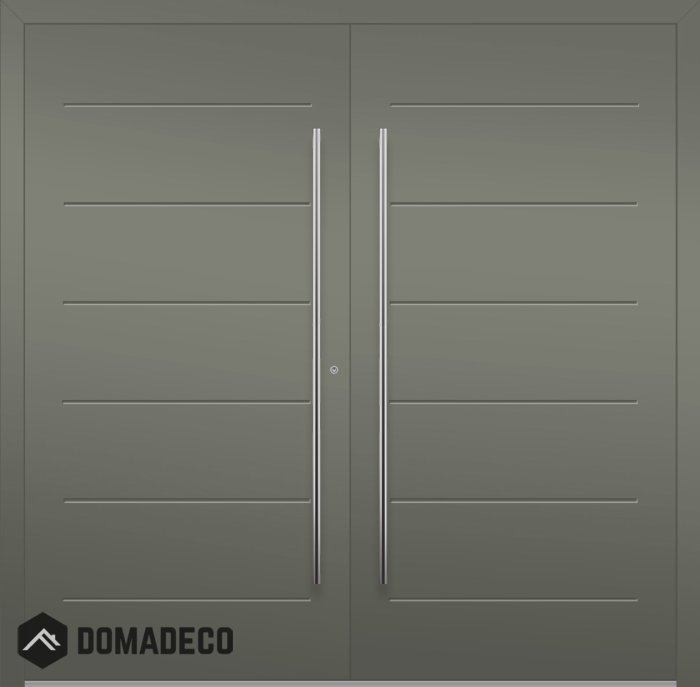 Una característica destacada de la puerta doble LIM W313 es su diseño de paneles acanalados, que no solo añade un elemento de sofisticación moderna, sino que también refuerza la integridad estructural de la puerta. Las acanaladuras crean sutiles sombras y reflejos que aportan dimensión y carácter a las superficies que, de otro modo, serían planas, elevando el aspecto general de la entrada. Este detalle de diseño único distingue a la LIM W313 de las puertas planas convencionales, ayudando a crear una fachada refinada y llamativa.