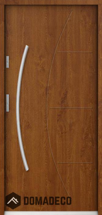 La puerta está hecha de acero inoxidable. En su interior está rellena de espuma de poliuretano PUR y madera. El grosor de la hoja de la puerta es de 55 mm. Posee un Sistema de Sellado Doble: Un sello se encuentra en la parte superior del marco y el otro en la parte de soporte de la hoja de la puerta. Reducen la vibración y protegen su casa de la pérdida de calor. No cambian su volumen bajo la influencia de las condiciones atmosféricas. El marco de la puerta tiene refuerzos antirrobo en partes de bisagras y puntos de cierre.
