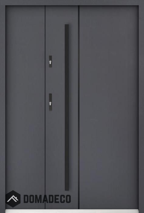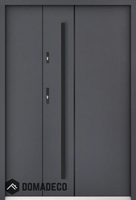 La puerta está hecha de acero inoxidable. En su interior está rellena de espuma de poliuretano PUR y madera. El grosor de la hoja de la puerta es de 55 mm. Posee un Sistema de Sellado Doble: Un sello se encuentra en la parte superior del marco y el otro en la parte de soporte de la hoja de la puerta. Reducen la vibración y protegen su casa de la pérdida de calor. No cambian su volumen bajo la influencia de las condiciones atmosféricas. El marco de la puerta tiene refuerzos antirrobo en partes de bisagras y puntos de cierre.